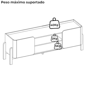 Peso máximo suportado: 47Kg (Tampo 40Kg, prateleira 2Kg e base 5Kg)