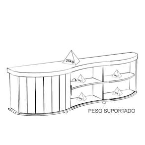 Peso suportado: Tampo 35kg / Nichos 3kg cada