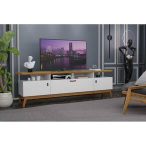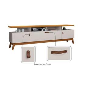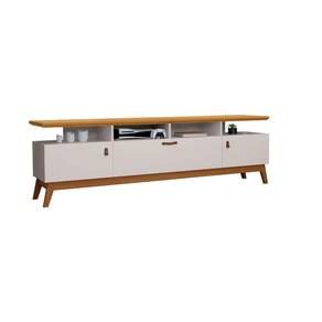 Rack Bancada TV Até 72 Polegadas Pés Em Madeira 3 Portas 4 Nichos Absolut 1.80 - Off White