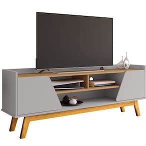 Estrutura: MDF/MDP com espessura de 15 mmAcabamento: Pintura U.V., com escala de brilho foscoPorta: Sim, 02 portas de abrir em MDF chanfradas com dobradiças metálicas com sistema soft-close eNicho: Sim, 03 nichos para melhor acomodação dos seus aparelhos eletrônicosPrateleira: Sim, 01 prateleiraPés: Sim, 04 pés de madeira Maciça (Pinus)Peso: Suportado Suporta o peso de 55 Kilos distribuídosSuporta TV: Ideal para TV de até 65 polegadas, espaço para TV, largura 156,6 cm e profundidade 34 cmDiferencial: Portas em MDF chanfradas; Dobradiças metálicas e sistema SOFT CLOSE; Pés de madeira MaciçaDimensões do produto montado