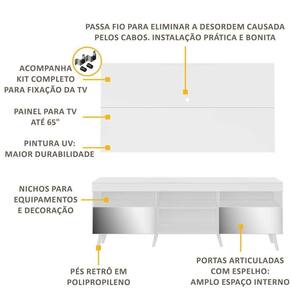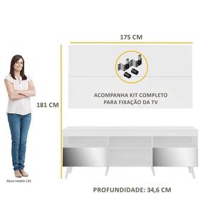A sala de estar é o melhor lugar para receber a família e amigos, por isso ter um ambiente bonito e aconchegante é fundamental. O Rack com Painel e Suporte para TV 65" com Espelho e Pés Retrô Flórida Multimóveis é uma ótima opção para aproveitar seu espaço de maneira inteligente. Produzido em MDP com pintura UV, que garante maior durabilidade e facilidade na limpeza, possui espaço para os equipamentos eletrônicos e nichos para objetos decorativos, além de duas portas articuladas com espelho e um amplo espaço interno para manter seus pertences organizados. O painel para TV de até 65 possui espaçamento para passagem dos fios, que permite deixar os cabos mais organizados. Devido as variações de tamanho dos televisores no mercado, sugerimos que verifique as medidas da sua TV e compare com o painel antes de efetuar a compra.Para facilitar a sua vida, este produto acompanha também o kit para fixação da TV. Muito prático e de fácil instalação, pode ser utilizado para TVs LCD, LED e plasma de 14 a 71. Totalmente sobreposto, acompanha gabarito de montagem que auxilia na instalação. Conta com um sistema de encaixe rápido, possui 16mm de deslocamento que permite o ajuste do encaixe das peças. Os espelhos são de vidro (o que evita que a imagem fique distorcida) e lapidados, ou seja, passam por um processo para que as bordas não fiquem cortantes, o que garante maior segurança.Os pés palito, estilo retrô, em polipropileno, dão um charme especial ao móvel deixando-o com um visual leve e permitindo você compor um ambiente com ar vintage e moderno ao mesmo tempo.No mercado moveleiro desde 1995, a Multimóveis utiliza tecnologia de ponta e se diferencia através do acabamento superior, demonstrando o cuidado e carinho na fabricação dos móveis. Utilizamos matéria-prima de madeira proveniente de reflorestamento, que contribui para a preservação do meio ambiente.Tamanho Painel TV: 175 x 90cmDevido as variações de tamanho dos televisores no mercado, sugerimos que verifique as medidas da sua TV e compare com o painel antes de efetuar a compra.Dimensões do produto montado:Painel - Altura: 90cm | Largura: 175cm | Profundidade: 2,5cmRack - Altura: 63,6cm | Largura: 175cm | Profundidade: 34,6cmDisponível em 9 opções de cores: Branco Branco/Preto Branco/Natural Preto Preto/Branco Preto/Natural Duna/Branco Duna/Preto Duna/Natural.As cores do produto podem sofrer variações de tonalidade de acordo com as configurações do seu monitor/celular.Imagem meramente ilustrativa. Decoração não acompanha o produto.Produto NOVO acompanha nota fiscal, manual de montagem e certificado de garantia.O produto será entregue desmontado e a Multimóveis não disponibiliza o serviço de montagem.