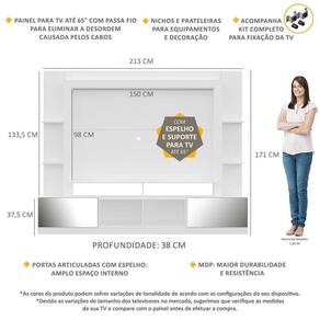Rack c/ Painel e Suporte TV 65" Portas c/ Espelho Oslo Multimóveis Branco