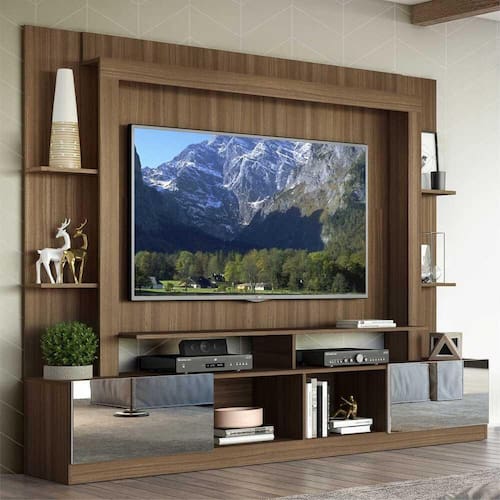 O Rack com Painel e Suporte TV 65" Portas com Espelho Oslo Multimóveis é perfeito para você deixar seu ambiente organizado e muito bem decorado. Produzido em MDP, que garante maior durabilidade e facilidade na limpeza, além de um acabamento superior, possui 2 portas articuladas com um excelente espaço interno para organizar seus pertences, prateleiras para que você possa personalizar a decoração e nichos para acomodar todos os equipamentos eletrônicos. Os detalhes com espelhos nas portas deixam o móvel mais requintado, criando um ambiente moderno e charmoso. Os espelhos são de vidro (o que evita que a imagem fique distorcida) e lapidados, ou seja, passam por um processo para que as bordas não fiquem cortantes, o que garante maior segurança. O painel com suporte para TV de até 65 (suporta até 30kg) possui espaçamento para passagem dos fios, que permite deixar os cabos mais organizados. Para facilitar a sua vida, este produto acompanha também o kit para fixação da TV. Muito prático e de fácil instalação, pode ser utilizado para TVs LCD, LED e plasma de 14 a 71. Totalmente sobreposto, acompanha gabarito de montagem que auxilia na instalação. Conta com um sistema de encaixe rápido, possui 16mm de deslocamento que permite o ajuste do encaixe das peças.