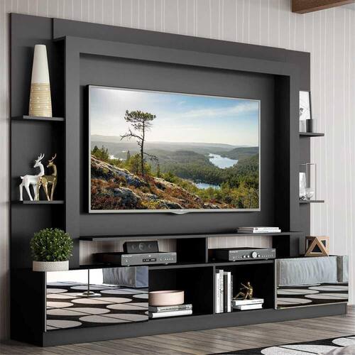 Dimensões do produto montado: Altura: 171cm | Largura: 213cm | Profundidade: 38cm Painel - Altura: 98cm | Largura: 150cm *Devido as variações de tamanho dos televisores no mercado, sugerimos que verifique as medidas da sua TV e compare com o painel antes de efetuar a compra. *Você pode consultar as medidas internas na imagem técnica do produto.