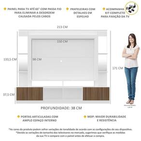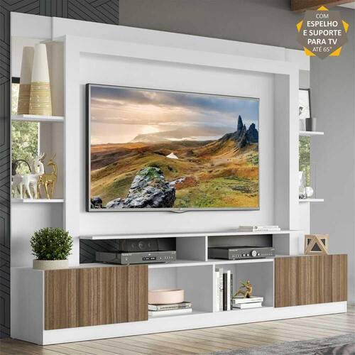 Rack c/ Painel e Suporte TV 65" Prateleiras c/ Espelho Oslo Multimóveis Branco/Madeirado