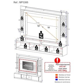 *Devido as variações de tamanho dos televisores no mercado, sugerimos que verifique as medidas da sua TV e compare com o painel antes de efetuar a compra.