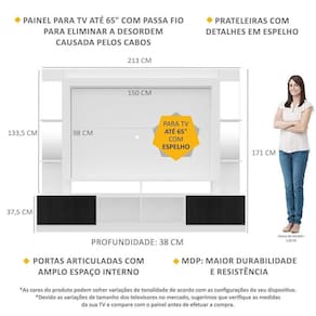 Rack c/ Painel TV 65" Prateleiras c/ Espelho Oslo Multimóveis Branco/Preto