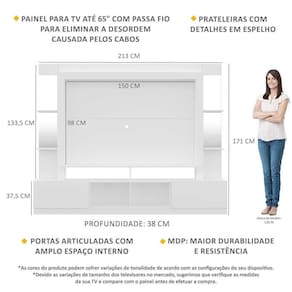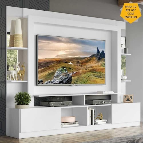 Rack c/ Painel TV 65" Prateleiras c/ Espelho Oslo Multimóveis Branco