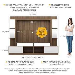 Rack c/ Painel TV 65" Prateleiras c/ Espelho Oslo Multimóveis Madeirado/Branco - Marrom