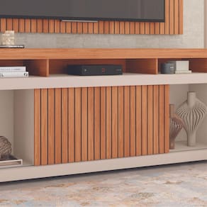 Caracteristicas: Painel: em MDF ripado em baixo relevo Prateleira superior: em MDP 25MM Portas: deslizantes MDF ripada em baixo relevo com fundo preto