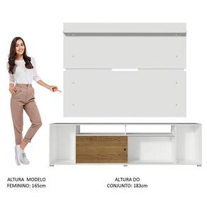 O painel comporta de até 65 polegadas e conta com abertura para passar os fios. Contempla também uma prateleira na parte superior, perfeita para objetos decorativos. Por ser separado do rack, pode ser fixado na altura desejada.