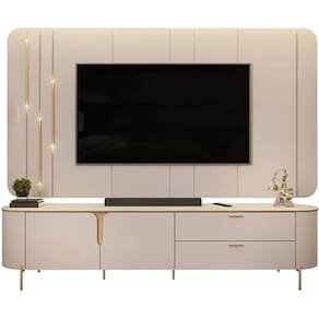Rack Celine com Painel Celine para TV até 75 Polegadas com LED 2 Portas 2 Gavetas DJ O Rack Celine com Painel Celine para TV até 75 Polegadas com LED 2 Portas 2 Gavetas DJ é ideal para quem deseja uma sala moderna e elegante, dando o destaque que ela merece. As luzes de LED embutidas no painel trazem um toque de elegância e sofisticação ao ambiente, criando uma atmosfera acolhedora para suas noites de filme em casa. Com 2 portas e 2 gavetas, este rack proporciona amplo espaço para armazenar seus dispositivos eletrônicos, filmes, controles remotos e muito mais. Chega de bagunça na sala de estar! Organize-se e aproveite o melhor do entretenimento em família com o Rack Celine com Painel Celine. Produzido com materiais de alta qualidade e acabamento impecável, este móvel é resistente e durável, garantindo que você desfrute de sua funcionalidade e beleza por muitos anos. E o melhor de tudo: o design moderno e minimalista combina perfeitamente com qualquer estilo de decoração, desde o clássico até o contemporâneo.\nMEDIDAS\nAltura (Rack) 57 cm\nLargura (Rack) 241 cm\nProfundidade (Rack) 47 cm\nAltura (Painel) 132 cm\nLargura (Painel) 241 cm\nProfundidade (Painel) 5 cm\nCARACTERÍSTICAS\nFabricante DJ\nModelo Rack Celine com Painel Celine\nGarantia 3 meses\nTipo de Produto Rack com Painel para TV\nAmbiente Sala de Estar\nEstrutura MDF\nEstilo Moderno\nQuantidade de Gavetas 02\nIdeal para TVs de até 75 Polegadas\nQuantidade de Portas 02\nTipo de Corrediça Telescópica\nTipo de Porta Bater\nPossui Iluminação LED Sim\nNecessita Montagem Sim\nAcompanha Manual de Instalação Sim\nINFORMAÇÕES IMPORTANTES\nObjetos decorativos que porventura apareçam na foto, não acompanham o produto. Não nos responsabilizamos pela montagem/instalação dos produtos.\nMontagens, desmontagens e instalações são responsabilidades do cliente. Indicamos que contrate uma empresa de montagem ou um montador de sua confiança.\nAlém disso, favor verificar se os pés e acessórios estão dentro do forro inferior do produto. Em suma, todas as informações divulgadas sobre o produto são de responsabilidade do Fabricante.\nAs cores do produto podem variar de acordo com o seu monitor, a iluminação do ambiente em que você está e até mesmo a sua percepção visual. Além da cor, pequenos detalhes e acabamentos podem não ficar evidentes na foto, por isso as imagens são meramente ilustrativas.