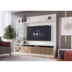 O home Quiditá 2026, possui acabamento finish foi, produzido em material de excelente qualidade, seu acabamento é superior pois é produzido em painel 100% mdp o que lhe garante tal benefício que o torna muito mais sofisticado e com um requinte que sua sala merece. Falando de requinte ele tem uma cristaleira com porta de vidro e prateleiras, pois agregam muito valor para suas peças de decoração. Falando em organização nele você conta com duas portas inferiores que são perfeitas para acomodar de tudo. O painel bem dimensionado acomodam televisores de até 50 polegadas, garantindo o melhor do entretenimento para você e sua família. Além disso, em seus nichos e prateleiras você pode acomodar seus aparelhos eletrônicos como home theater, dvd e receptador de antena. Produto Montado: Sim Acabamento: Finish Foil Acabamento da Porta: Finish Foil Acabamento da Prateleira: Finish Foil Altura do Conjunto: 180 cm Altura do Painel: 103,5 cm Altura do Rack: 46 cm Ambiente Principal: Sala de Estar codigo_ean: 7909903246214 Complexidade da Montagem: Baixa: pode ser montado por uma pessoa sozinha Cor: Branco/Brise Cor do Produto: Branco/Brise Cor Flex: Não Cor Interna: Branco Escala de Brilho: Semi-Brilho Escala de Brilho da Porta: Semi-Brilho Escala de Brilho da Prateleira: Semi-Brilho Espessura do Painel: 1,5 cm Espessura do Vidro: 10 mm Ideal para TVs até (Polegadas): 50 Informações Complementares: 1 Porta de Vidro 10mm de bater com puxador externo. Itens Inclusos: 1 Estante para TV e Home Theater e 1 Manual de Montagem Largura do Painel: 121,5 cm Largura do Rack: 160 cm Manual de Montagem e Instalação: https://product-hub-prd.madeiramadeira.com.br/825627/documents/e684adb3-f69b-45ca-a5a3-a28109d3524f117209078997880918973.pdf Material da Porta: MDP Material da Prateleira: MDP Material Principal: MDP Montagem Flex: Não Necessita Montagem: Sim Origem do Produto: Nacional Peso do Painel: 30,5 kg Peso do Rack: 42 kg Peso Máximo por Prateleira: 7 kg Possui Adega: Sim Possui Espelho: Não Possui iluminação: Não Possui Pés: Não Possui Portas: Sim Possui Prateleiras: Sim Possui Vidro: Sim Profundidade do Painel: 1.5000 Profundidade do Rack: 35 cm Quantidade de Nichos: 03 Recomendações de Uso, Manutenção e Limpeza: Deve ser feita com pano macio e seco ou levemente umedecido com água e sabão neutro. Não devem ser utilizados abrasivos como palha de aço e objetos cortantes. Sistema de Montagem: Parafusos e Minifix Suporte de TV Universal Incluso: Não Tipo de Dobradiça/Corrediça da Porta: Metálica Tipo de Puxador da Porta: Externo