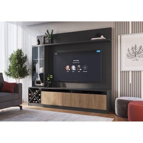 O home Quiditá 2026, possui acabamento finish foi, produzido em material de excelente qualidade, seu acabamento é superior pois é produzido em painel 100% mdp o que lhe garante tal benefício que o torna muito mais sofisticado e com um requinte que sua sala merece. Falando de requinte ele tem uma cristaleira com porta de vidro e prateleiras, pois agregam muito valor para suas peças de decoração. Falando em organização nele você conta com duas portas inferiores que são perfeitas para acomodar de tudo. O painel bem dimensionado acomodam televisores de até 50 polegadas, garantindo o melhor do entretenimento para você e sua família. Além disso, em seus nichos e prateleiras você pode acomodar seus aparelhos eletrônicos como home theater, dvd e receptador de antena. Produto Montado: Sim Acabamento: Finish Foil Acabamento da Porta: Finish Foil Acabamento da Prateleira: Finish Foil Altura do Conjunto: 180 cm Altura do Painel: 103,5 cm Altura do Rack: 46 cm Ambiente Principal: Sala de Estar codigo_ean: 7909903246252 Complexidade da Montagem: Baixa: pode ser montado por uma pessoa sozinha Cor: Grafite/Brise Cor do Produto: Grafite/Brise Cor Flex: Não Cor Interna: Grafite Escala de Brilho: Semi-Brilho Escala de Brilho da Porta: Semi-Brilho Escala de Brilho da Prateleira: Semi-Brilho Espessura do Painel: 1,5 cm Espessura do Vidro: 10 mm Ideal para TVs até (Polegadas): 50 Informações Complementares: 1 Porta de Vidro 10mm de bater com puxador externo. Itens Inclusos: 1 Estante para TV e Home Theater e 1 Manual de Montagem Largura do Painel: 121,5 cm Largura do Rack: 160 cm Manual de Montagem e Instalação: https://product-hub-prd.madeiramadeira.com.br/825640/documents/0581b2b8-8592-4922-b49c-39f8da334f1d117209078997880918973.pdf Material da Porta: MDP Material da Prateleira: MDP Material Principal: MDP Montagem Flex: Não Necessita Montagem: Sim Origem do Produto: Nacional Peso do Painel: 30,5 kg Peso do Rack: 42 kg Peso Máximo por Prateleira: 7 kg Possui Adega: Sim Possui Espelho: Não Possui iluminação: Não Possui Pés: Não Possui Portas: Sim Possui Prateleiras: Sim Possui Vidro: Sim Profundidade do Painel: 1.5000 Profundidade do Rack: 35 cm Quantidade de Nichos: 03 Recomendações de Uso, Manutenção e Limpeza: Deve ser feita com pano macio e seco ou levemente umedecido com água e sabão neutro. Não devem ser utilizados abrasivos como palha de aço e objetos cortantes. Sistema de Montagem: Parafusos e Minifix Suporte de TV Universal Incluso: Não Tipo de Dobradiça/Corrediça da Porta: Metálica Tipo de Puxador da Porta: Externo undefined: 825627