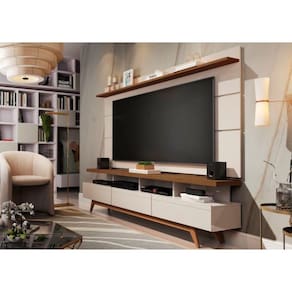 Rack Com Painel 1.80 TV Até 72 Retrô Pés Madeira Gavetas Nichos Prateleira
