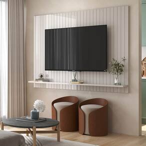 Rack com Painel Dallas para TV até 75 polegadas 3 Portas e Rodízios Off White/Jequitibá - Lukaliam