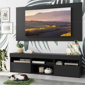 O Rack com Painel e Suporte para TV até 65 Polegadas com 2 portas Londres Multimóveis é produzido em MDP com acabamento acetinado, que garante maior durabilidade e facilidade na limpeza, possui 4 nichos com espaço para os equipamentos eletrônicos e objetos decorativos, além de 2 portas articuladas com um amplo espaço interno para manter seus pertences organizados. O painel para TV de até 65 possui espaçamento para passagem dos fios, que permite deixar os cabos mais organizados e o visual clean. Para facilitar a sua vida, este produto acompanha também o kit para fixação da TV. Muito prático e de fácil instalação, pode ser utilizado para TVs LCD, LED e plasma de 14 a 71. Totalmente sobreposto, acompanha gabarito de montagem que auxilia na instalação. Conta com um sistema de encaixe rápido, possui 16mm de deslocamento que permite o ajuste do encaixe das peças. Uma ótima opção para deixar sua sala linda e confortável para curtir os melhores filmes e séries.