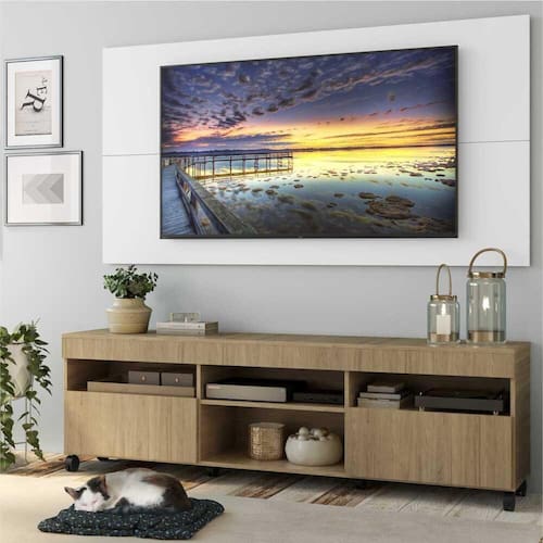 Rack com Painel e Suporte TV 65" com Rodízios e 2 portas Londres Multimóveis Rustic/Branco - Marrom