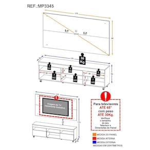 *Devido as variações de tamanho dos televisores no mercado, sugerimos que verifique as medidas da sua TV e compare com o painel antes de efetuar a compra.