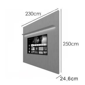 Rack com Painel Nobre Sem Nicho 230cm para TV até 85 Polegadas Ripado com LED 2 Portas 1 Gaveta Gelius O Rack com Painel Nobre Sem Nicho 230cm para TV até 85 Polegadas Ripado com LED 2 Portas 1 Gaveta Gelius é o equilíbrio perfeito entre design moderno e funcionalidade inteligente. Com LED, 2 portas e 1 gaveta, este móvel é uma combinação impecável de estilo e praticidade. Nenhuma bagunça, apenas elegância e facilidade de armazenamento – é um sonho tornado realidade para qualquer pessoa que valorize a organização na sala de estar. O Rack com Painel Nobre Sem Nicho 230cm é mais do que um simples móvel; é uma declaração de estilo e sofisticação para o seu espaço de entretenimento. E com a garantia de qualidade da Gelius, você pode ter certeza de que é um investimento que vai durar anos e anos. Então, se você quer adicionar um toque de elegância à sua sala de estar, multitarefa para organizar com inteligência, e dar um passo gigante na direção de um espaço de entretenimento de primeira classe, esse conjunto é a escolha perfeita para você! MEDIDAS Altura (Rack) 60 cm Largura (Rack) 209,5 cm Profundidade (Rack) 40 cm Altura (Painel) 250cm Largura (Painel) 230cm Profundidade (Painel) 24,6cm CARACTERÍSTICAS Fabricante Gelius Modelo Rack com Painel Nobre Sem Nicho 230cm Garantia 3 meses Tipo de produto Rack com Painel para TV Ambiente Sala de Estar Estrutura MDF Estilo Moderno Possui Iluminação LED Sim Ideal para TVs de até 85 Polegadas Quantidade de Gavetas 01 Tipo de Corrediça Telescópica Quantidade de Portas 02 Tipo de Porta Bater Necessita Montagem Sim Acompanha Manual de Instalação Sim INFORMAÇÕES IMPORTANTES Objetos decorativos que porventura apareçam na foto, não acompanham o produto. Não nos responsabilizamos pela montagem/instalação dos produtos. Montagens, desmontagens e instalações são responsabilidades do cliente. Indicamos que contrate uma empresa de montagem ou um montador de sua confiança. Além disso, favor verificar se os pés e acessórios estão dentro do forro inferior do produto. Em suma, todas as informações divulgadas sobre o produto são de responsabilidade do Fabricante. As cores do produto podem variar de acordo com o seu monitor, a iluminação do ambiente em que você está e até mesmo a sua percepção visual. Além da cor, pequenos detalhes e acabamentos podem não ficar evidentes na foto, por isso as imagens são meramente ilustrativas.