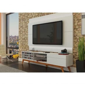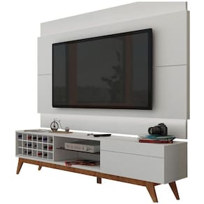 Rack Com Painel Para Tv 55 Polegadas Branco Classic Ad Com Led - Imcal Móveis Charme, requinte e praticidade você encontra no Rack Classic AD - Imcal Móveis! A linha Classic foi elaborada para oferecer conforto, comodidade e beleza para toda a família. Produzido em MDP e MDF que oferecem resistência e durabilidade ao móvel, esta peça é perfeita para organizar e decorar o seu ambiente, com uma gaveta de corrediças telescópicas, prateleira em vidro temperado 5mm e adega para 21 garrafas, possui espaço para acomodar itens pessoais, objetos de decoração, suas bebidas e aparelhos eletrônicos, mantendo tudo muito bem ões do Painel Montado:Altura: 128 cmLargura: 180 cmProfundidade: 6 cmDimensões do Rack Montado:Altura: 52 cmLargura: 180,2 cmProfundidade: 40,3 cmObservações:- Estrutura em MDP/MDF;- Corrediças telescópicas;- Pé em madeira maciça;- Fita LED para o painel inclusa;- Ideal para TVs de até 55 polegadas;- Pintura Ultravioleta com acabamento acetinado. Marca: Não Informado