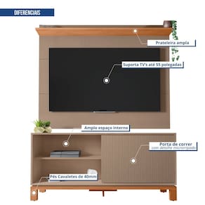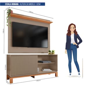 A composição de painel e bancada de 1,36m da Caemmun é a escolha perfeita para quem busca modernidade e funcionalidade em um único móvel. O grande lançamento de 2025 traz o acabamento Microripado, um detalhe que confere um toque suave e leve ao ambiente. O painel extensível oferece versatilidade e praticidade, permitindo ajustar o tamanho de acordo com suas necessidades. A prateleira superior é ideal para acomodar objetos decorativos e eletrônicos, enquanto a bancada com espaço interno, pés cavalete e porta de correr garante organização e funcionalidade, garantindo a instalação do televisor de até 45 polegadas. Produto Montado: Sim Acabamento: Pintura Acabamento da Porta: Pintura Texturizada UV Acabamento da Prateleira: Pintura Altura do Painel: 108 cm Altura do Rack: 61,9 cm Altura dos Pés: 5 cm Altura Máxima dos Pés: 5.0000 Ambiente Principal: Sala de Estar codigo_ean: 7900288159939 Complexidade da Montagem: Média: pode ser montado por mais de uma pessoa e/ou necessite de maior conhecimento para montagem Cor: Freijó Cor do Produto: Freijo Escala de Brilho: Fosco Escala de Brilho da Porta: Fosco Escala de Brilho da Prateleira: Fosco Espessura do Painel: 17,5 cm Espessura do Tampo: 15 mm Fixação na Parede: Sim Ideal para TVs até (Polegadas): 55 Itens Inclusos: 1 Rack, 1 Painel, Kit Ferragens e Manual de Montagem Largura do Painel: 136 cm Largura do Rack: 136 cm Linha ou Coleção: Mondrian Manual de Montagem e Instalação: https://product-hub-prd.madeiramadeira.com.br/953737882/documents/b7176eec-7e4c-45cc-898e-85a06f50c8a82878028559517455904271929.pdf Marca: Caemmun Material da Porta: MDP Material da Prateleira: MDP Material dos Pés: MDP Material Principal: MDP Necessita Montagem: Sim Origem do Produto: Nacional Peso do Painel: 20,2 kg Peso do Rack: 25 kg Peso Máximo por Prateleira: 2 kg Possui Espelho: Não Possui iluminação: Não Possui Passa Cabos: Sim Possui Pés: 05 Possui Portas: Sim Possui Tomada: Não Possui Vidro: Não Profundidade do Painel: 17.5000 Profundidade do Rack: 36 cm Recomendações de Uso, Manutenção e Limpeza: Limpar com pano macio levemente umedecido e em seguida pano macio seco. Não utilizar produtos abrasivos (lixas, esponjas) e/ou produtos a base de solventes (thinner, aguarrás). Sapatas Niveladoras: Não Sistema de Montagem: Utiliza-se na montagem do produto sistema de fixação minifix, dobradiças, dispositivos angulares, cavilhas, parafusos, porcas cilindricas, entre outros; Suporte de TV Universal Incluso: Não Tipo de Dobradiça/Corrediça da Porta: Plástica Tipo de Puxador da Porta: Externo