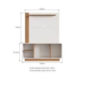 1x Painel para Tv 55 Polegadas com Detalhe Ripado Texas Freijó/Off White Largura: 136 cm Altura: 120 cm Peso: 21,3 kg Profundidade: 18 cm Necessita Montagem: Sim