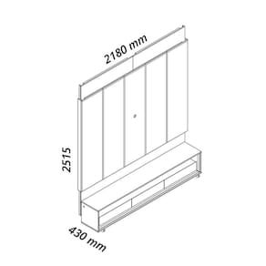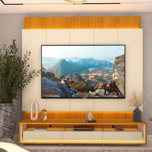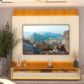 O Conjunto Painel Magnífico Rack Requinte com rodízios une elegância, modernidade e praticidade. Com LED em cor quente, pintura UV atóxica, gavetas com corrediças telescópicas e bordas chanfradas, o móvel ainda conta com rodízios que facilitam a movimentação sem perder estilo e resistência. Produto Montado: Sim Acabamento: Pintura UV Acabamento da Gaveta: Pintura UV Acompanha Lâmpada: Não Acompanha Manual de Instalação: Sim Altura do Conjunto: 251,5 cm Altura do Painel: 230 cm Altura do Rack: 45 cm Altura dos Pés: cm Ambiente Principal: Sala de Estar codigo_ean: 7900288232748 Complexidade da Montagem: Alta: deve ser montado por um montador especializado Cor: Naturale/Off White Cor do Produto: Naturale/Off White Cor Flex: Não Cor Interna: Off White Escala de Brilho: Brilhante Escala de Brilho da Gaveta: Brilhante Espessura do Painel: 8 cm Espessura do Tampo: 15 mm Espessura do Vidro: 3 mm Fixação na Parede: Sim Gaveta com Chave: Não Ideal para TVs até (Polegadas): 84 Informações Complementares: Iluminação por fita LED. Itens Inclusos: 1 Rack, 1 Painel, Kit Ferragens e Manual de Montagem Largura do Conjunto: 218 cm Largura do Painel: 218 cm Largura do Rack: 211,4 cm Linha ou Coleção: Magnífico/Requinte Manual de Especificação Técnica: https://product-hub-prd.madeiramadeira.com.br/963372615/documents/49a9583e-652e-4d42-bd57-ec9c4b126ec9317540055017568199230654.pdf Manual de Montagem e Instalação: https://product-hub-prd.madeiramadeira.com.br/963372615/documents/43cef426-775b-4f2b-8b64-816f4716d231317539955017568199110836.pdf Marca: Gelius Móveis Material da Gaveta: MDF Material Principal: MDF Montagem Flex: Não Necessita Montagem: Sim Origem do Produto: Nacional Peso do Painel: 71 kg Peso do Rack: 50 kg Peso Máximo por Gaveta: 5 kg Possui Adega: Não Possui Espelho: Não Possui iluminação: Sim Possui Passa Cabos: Sim Possui Pés: Não Possui Portas: Não Possui Prateleiras: Não Possui Tomada: Não Possui Vidro: Sim Profundidade do Conjunto: 43 cm Profundidade do Painel: 8.0000 Profundidade do Rack: 34,8 cm Quantidade de Gavetas: 03 Gavetas Recomendações de Uso, Manutenção e Limpeza: A limpeza do produto deve ser feita por meio do uso de um pano, umedecido com água, e um pano seco. É importante para fazer a limpeza do móvel nunca utilizar produtos químicos ou abrasivos. Para conservar o padrão de qualidade dos produtos Gelius, nunca arraste um móvel se este estiver cheio. Nunca puxe o móvel de frente para você, pois ele pode balançar e provocar acidentes. Sistema de Montagem: Convencional: parafusos, pregos, cavilhas, etc. Suporte de TV Universal Incluso: Não Tipo de Corrediça da Gaveta: Metálica Telescópica Tipo de Puxador da Gaveta: Embutido