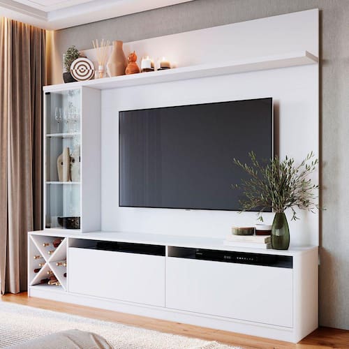 O(a) Rack com Painel para TV Até 50 Polegadas 2 Portas 2021 Bac Branco - Quiditá Móveis é produzido em MDP na escala de brilho Semi-Brilho, e possui um grau de dificuldade de montagem: Médio.