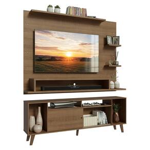 O Painel para TV comporta TVs de até 60 polegadas e conta com espaço para passagem de fios e cabos, ajudando a manter tudo organizado. O Rack possui nichos de tamanhos variados, com espaços que facilitam a organização. Os pés elevam o móvel, melhoram a sustentação e completam o visual com um toque moderno.