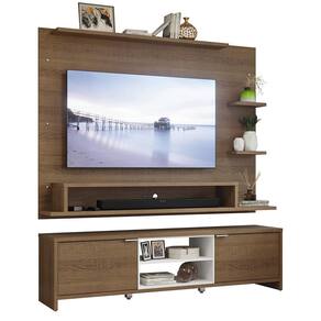 O conjunto se destaca pelo acabamento no tom amadeirado Rustic com nicho branco, criando um contraste elegante. Para completar, os puxadores em alumínio e a pintura de alta resistência reforçam a durabilidade do móvel e valorizam ainda mais o visual.