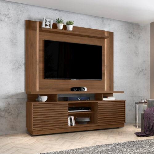 O Rack New Blumenau veio para complementar a decoração de sua casa com muito estilo e sofisticação! O Rack possui 1,82m de largura, sua estrutura é em MDP e MDF. As portas em detalhes ripado possuem a facilidade de ser deslizantes para melhor abertura. Conta ainda com cinco nichos para decoração e aparelhos eletrônicos. Para TV de até 60 é uma ótima opção para você que sonha com uma sala estilo Cinema! E se você adora a praticidade dos racks mas deseja dar um toque de sofisticação para a sua sala de estar, precisa conhecer o painel extensível para TV Aurora. Um complemento incrível que une praticidade e funcionalidade. Com amplo espaço para TVs de até 60 polegadas, este painel garante que sua TV fique suspensa, liberando mais espaço sobre o balcão do seu rack para objetos decorativos.