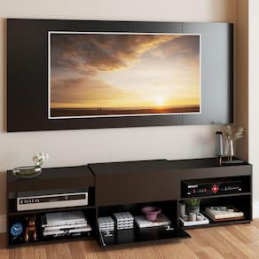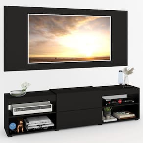 O(a) Rack com Painel para TV Até 60 Polegadas Roma 1 Porta 2 Prateleiras Preto - Panorama Móveis é produzido em MDF e MDP na escala de brilho Fosco, e possui um grau de dificuldade de montagem: Médio.