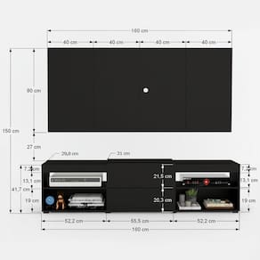 Medidas do Rack (A x L x P): 41,7 x 160 x 31 Cm