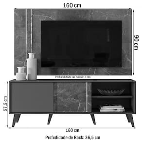 - Medidas do Rack (A x L x P): 57,5 x 160 x 36,5 Cm