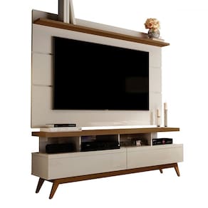 Rack com Painel para TV Até 70 Polegadas Galahad 2 Gavetas Off White/Freijó - Pnr Móveis - Bege