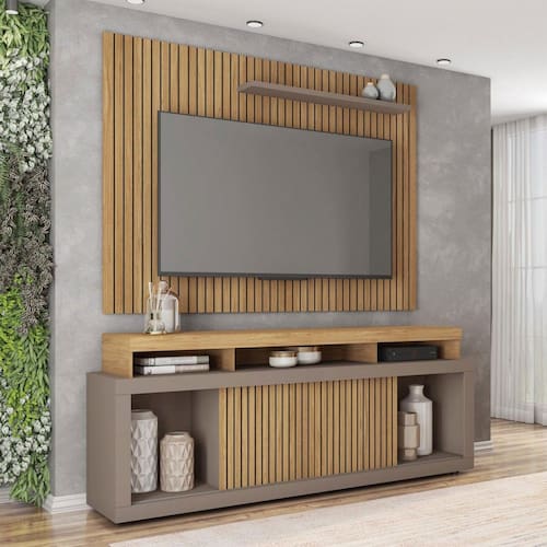 O(a) Rack com Painel para TV Até 70 Polegadas Puerto Buriti/Marrom Claro - Pnr Móveis é produzido em MDF, MDP e HDF na escala de brilho Fosco, e possui um grau de dificuldade de montagem: Médio.