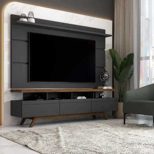 O(a) Rack com Painel para TV Até 72 Polegadas Armênia 3 Gavetas Black/Freijó - Loja é produzido em MDF e MDP na escala de brilho Semi-Brilho, e possui um grau de dificuldade de montagem: Médio.