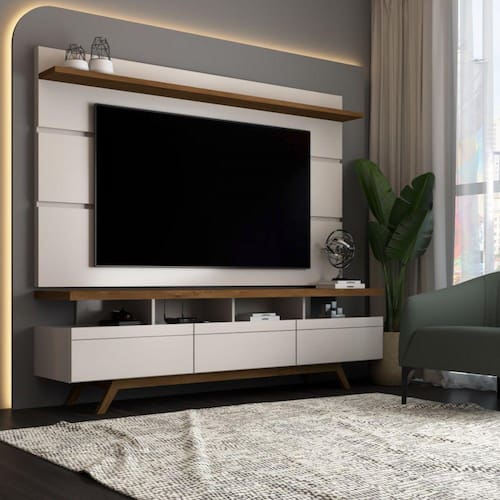 O(a) Rack com Painel para TV Até 72 Polegadas Armênia 3 Gavetas Off White/Freijó - Loja é produzido em MDF e MDP na escala de brilho Semi-Brilho, e possui um grau de dificuldade de montagem: Médio.