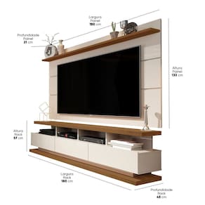 O Rack com Painel Vivare é ideal para proporcionar autenticidade e espaço para sua sala. Rack para TV até 72 polegadas e com rodício que facilita a limpeza e o acesso a tomadas para seus equipamentos. Produto com peças amadeirada dando um toque de sofisticação. Painel com prateleira para seus objetos de decoração. Com esta peça na sua sala você irá transmitir inovação, modernidade e com certeza a sua sala se tornará um ambiente aconchegante . Produto Montado: Sim Acabamento: Impressão Acabamento da Gaveta: Impressão Acabamento da Prateleira: Impressão Altura do Painel: 133 cm Altura do Rack: 57 cm Altura dos Pés: 8 cm Ambiente Principal: Sala de Estar codigo_ean: 7900288156327 Complexidade da Montagem: Alta: deve ser montado por um montador especializado Cor: Off White/Freijó Cor do Produto: Off White/Freijó Escala de Brilho: Semi-Brilho Escala de Brilho da Prateleira: Semi-Brilho Espessura do Painel: 1,5 cm Espessura do Tampo: 25 mm Fixação na Parede: Sim Gaveta com Chave: Não Ideal para TVs até (Polegadas): 72 Itens Inclusos: 1 Rack, 1 Painel e Ferragens Largura do Painel: 180 cm Largura do Rack: 180 cm Linha ou Coleção: Vivare Manual de Montagem e Instalação: https://product-hub-prd.madeiramadeira.com.br/161326414/documents/66a86c9d-42c3-418e-81c4-e74baa0081ca2940156391717477502885587.pdf Marca: Giga Móveis Material da Gaveta: MDF/MDP Material da Prateleira: MDF/MDP Material dos Pés: PVC Material Principal: MDF/MDP Necessita Montagem: Sim Peso do Painel: 34,92 kg Peso do Rack: 57,424 kg Peso Máximo por Gaveta: 5 kg Peso Máximo por Prateleira: 5 kg Possui Espelho: Não Possui iluminação: Não Possui Passa Cabos: Sim Possui Pés: 06 Possui Portas: Não Possui Tomada: Não Possui Vidro: Não Profundidade do Painel: 1.5000 Profundidade do Rack: 45 cm Recomendações de Uso, Manutenção e Limpeza: Limpe Com Pano Levemente Umedecido Em Água. Nunca Utilize Produto Químico. Rodízio com Trava: Sim Sapatas Niveladoras: Não Sistema de Montagem: parafusos, girofix e cavilhas Suporte de TV Universal Incluso: Não Tipo de Corrediça da Gaveta: Metálica Telescópica Tipo de Puxador da Gaveta: Embutido Marca: Giga Móveis