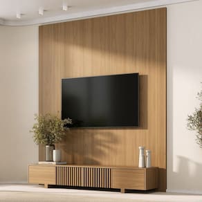 O Rack com painel Aruá traz a essência do estilo japandi, inspirado na simplicidade oriental e no equilíbrio entre forma e função. O rack possui um design baixo com acabamento em Jatobá, ferragens premium, unindo sofisticação e praticidade. Já os painéis são produzidos em chapas de 15mm e oferecem modularidade e personalização do espaço. Versáteis, podem ser utilizados como revestimentos de parede ou painéis de TV, transformando o ambiente com harmonia e elegância. Produto Montado: Sim Acabamento: Finish Foil Acabamento da Porta: Finish Foil Acabamento dos Pés: Finish Foil Altura do Conjunto: 250 cm Altura do Painel: 250 cm Altura do Rack: 31,4 cm Altura dos Pés: 5,5 cm Altura Máxima dos Pés: 5.5000 Ambiente Principal: Sala de Estar codigo_ean: 7900288261199 Complexidade da Montagem: Média: pode ser montado por mais de uma pessoa e/ou necessite de maior conhecimento para montagem Cor: Jatobá Cor do Produto: Jatobá Escala de Brilho: Semi-Fosco Escala de Brilho da Porta: Semi-Fosco Espessura do Painel: 3 cm Espessura do Tampo: 15 mm Fixação na Parede: Sim Ideal para TVs até (Polegadas): 75 Itens Inclusos: 1Painel, 1 Rack, Manual de Montagem e Kit Ferragens Largura do Conjunto: 200 cm Largura do Painel: 200 cm Largura do Rack: 180 cm Linha ou Coleção: Aruá Manual de Montagem e Instalação: https://product-hub-prd.madeiramadeira.com.br/902620404/documents/25f63cc1-7c79-408e-acbc-3be82f18adfa3272134600517603860399575.pdf Marca: CabeCasa MadeiraMadeira Material da Porta: MDP Material do Puxador da Porta: Plástico Material dos Pés: MDP Material Principal: MDP Necessita Montagem: Sim Origem do Produto: Nacional Peso do Painel: 58,3 kg Peso do Rack: 28,25 kg Possui Espelho: Não Possui iluminação: Não Possui Passa Cabos: Não Possui Pés: 02 Possui Portas: Sim Possui Prateleiras: Não Possui Tomada: Não Possui Vidro: Não Profundidade do Conjunto: 39 cm Profundidade do Painel: 3.0000 Profundidade do Rack: 36 cm Recomendações de Uso, Manutenção e Limpeza: A limpeza deve ser feita com pano macio, levemente umedecido com água e sabão neutro. Em seguida, passe um pano seco para evitar o acúmulo de umidade. Nunca utilize produtos abrasivos, esponjas de aço, alvejantes, álcool em excesso ou solventes, pois esses produtos podem agredir o acabamento e comprometer sua aparência. Sapatas Niveladoras: Não Sistema de Montagem: Parafusos e cavilhas Suporte de TV Universal Incluso: Não Tipo de Dobradiça/Corrediça da Porta: Metálica Tipo de Puxador da Porta: Embutido
