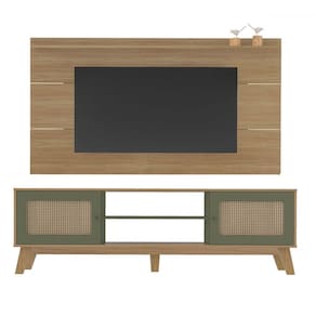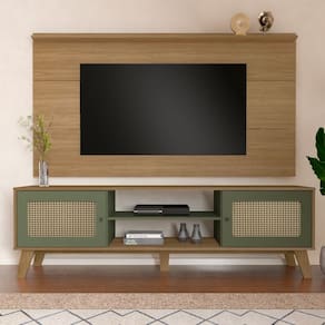 O(a) Rack com Painel para TV Até 75 Polegadas Tauari C/ Suporte para TV 2 Portas Carvalho/Menta - Pnr Móveis é produzido em MDP na escala de brilho Fosca com Textura e Fosco, e possui um grau de dificuldade de montagem: Médio.