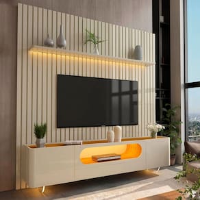 O(a) Rack com Painel para TV Até 85 Polegadas Nobre 2 Portas Ripado 100% Mdf com Vidro Off White/Naturalle - Gelius é produzido em 100% MDF na escala de brilho Semi-Fosco, e possui um grau de dificuldade de montagem: Médio.