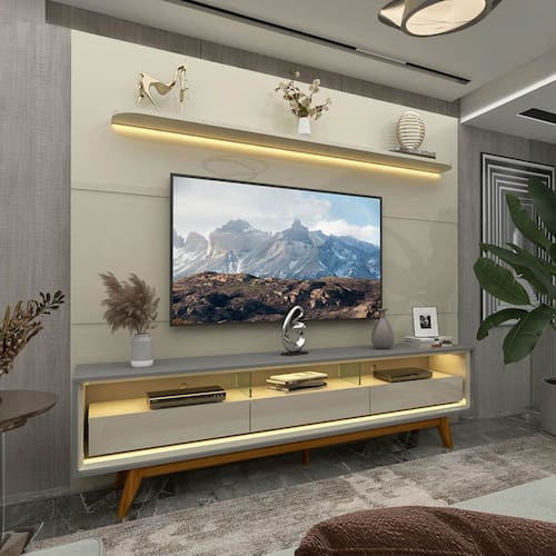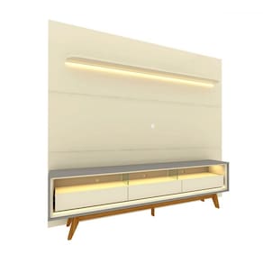 O(a) Rack com Painel para TV Até 85 Polegadas Royal Requinte 100% Mdf com Led Off White/Cinza - Gelius é produzido em 100% MDF na escala de brilho Brilhante, e possui um grau de dificuldade de montagem: Médio.