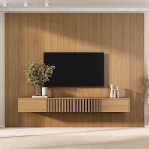 O Rack com painel Aruá traz a essência do estilo japandi, inspirado na simplicidade oriental e no equilíbrio entre forma e função. O rack possui um design baixo com acabamento em Jatobá, ferragens premium, unindo sofisticação e praticidade. Já os painéis são produzidos em chapas de 15mm e oferecem modularidade e personalização do espaço. Versáteis, podem ser utilizados como revestimentos de parede ou painéis de TV, transformando o ambiente com harmonia e elegância. Produto Montado: Sim Acabamento: Finish Foil Acabamento da Porta: Finish Foil Acabamento dos Pés: Finish Foil Altura do Conjunto: 250 cm Altura do Painel: 250 cm Altura do Rack: 31,4 cm Altura dos Pés: 5,5 cm Altura Máxima dos Pés: 5.5000 Ambiente Principal: Sala de Estar codigo_ean: 7900288293572 Complexidade da Montagem: Média: pode ser montado por mais de uma pessoa e/ou necessite de maior conhecimento para montagem Cor: Jatobá Cor do Produto: Jatobá Escala de Brilho: Semi-Fosco Escala de Brilho da Porta: Semi-Fosco Espessura do Painel: 3 cm Espessura do Tampo: 15 mm Fixação na Parede: Sim Itens Inclusos: Painel com Rack, Manual de Montagem e Kit Ferragens Largura do Conjunto: 280 cm Largura do Painel: 280 cm Largura do Rack: 210 cm Linha ou Coleção: Aruá Manual de Montagem e Instalação: https://product-hub-prd.madeiramadeira.com.br/933584517/documents/c8974939-685b-43f3-8e43-62add7ab6f6f3342569342817658314424869.pdf Marca: CabeCasa MadeiraMadeira Material da Porta: MDP Material dos Pés: MDP Material Principal: MDP Montagem Flex: Não Necessita Montagem: Sim Origem do Produto: Nacional Peso do Painel: 82,3 kg Peso do Rack: 32 kg Possui Espelho: Não Possui iluminação: Não Possui Passa Cabos: Não Possui Pés: 02 Possui Prateleiras: Não Possui Tomada: Não Possui Vidro: Não Profundidade do Conjunto: 39 cm Profundidade do Rack: 36 cm Recomendações de Uso, Manutenção e Limpeza: A limpeza deve ser feita com pano macio, levemente umedecido com água e sabão neutro. Em seguida, passe um pano seco para evitar o acúmulo de umidade. Nunca utilize produtos abrasivos, esponjas de aço, alvejantes, álcool em excesso ou solventes, pois esses produtos podem agredir o acabamento e comprometer sua aparência. Sapatas Niveladoras: Não Sistema de Montagem: Parafusos e cavilhas Suporte de TV Universal Incluso: Não Tipo de Dobradiça/Corrediça da Porta: Metálica Tipo de Puxador da Porta: Embutido