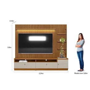 O Conjunto Rack + Painel + Módulo Lateral Ouro Preto foi projetado para TV de até 75 polegadas. Possui tampo de 37mm de espessura, 2 gavetas e 1 porta de abrir com puxadores em couro. Conta ainda com 4 prateleiras para dispor objetos decorativos e haste metálica. O módulo lateral poderá ser montado do lado direito ou esquerdo do móvel. Seu painel ripado e a fita de Led deixam a sua sala ainda mais moderna.Características: Marca: Linea BrasilModelo: Rack com Painel Ripado 1 Módulo Lateral Ouro Preto Linea BrasilEspaço para TV até 75 polegadas no painel Espaço útil no painel : 1,80m x 1,22m x 0,38m (L x A x P)Espaço para TV até 70 polegadas no tampoEspaço útil no tampo : 1,80m x 0,00x 0,38m (L x A x P)Material: MDP/MDFTampo: MDP com espessura de 37mmNichos : 2Passa Fios : 3 Portas: 1 porta de abrir em MDF Gavetas: 2 gavetas Prateleiras: 4 prateleiras em MDP Pés: não há Puxadores : 3 puxadores em couro Luminária: 1 fita de Led Corrediça: 4 corrediças telescópicasDobradiça: 2 dobradiças metálicas Demais acessórios: 1 hastes metálicas Dimensões:Altura: 1,98m Largura: 2,24m Profundidade: 0,41m Peso Bruto: 114 kgQuantidade de volumes: 4Garantia do Fornecedor: 3 meses.