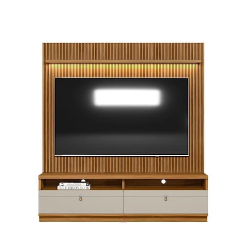 O Conjunto Rack com Painel Ouro Preto foi projetado para TV de até 75 polegadas. Possui tampo de 37mm de espessura, 2 gavetas com corrediças telescópicas e puxadores em couro. Conta ainda com uma prateleira superior para dispor objetos decorativos. O painel todo com detalhes em ripado deixa o ambiente ainda mais moderno. Características: Marca: Linea Brasil Modelo: Rack com Painel Ripado Ouro Preto Linea Brasil Espaço útil no painel: 1,80m largura x 1,22m altura x 0,38m profundidade Espaço para TV no Painel até 75 polegadas Material: MDP/MDFTampo: MDP com espessura de 37mmNichos : 2Passa Fios : 3 Portas: não há Gavetas: 2 gavetas Prateleiras: 1 prateleira em MDP 25mmPés: não há Puxadores : 2 puxadores em couro Luminária: 1 fita de Led Corrediça: 4 corrediças telescópicasDimensões:Altura: 1,98m Largura: 1,80m Profundidade: 0,41m Peso Bruto: 88,0 kgQuantidade de volumes: 3Garantia do Fornecedor: 3 meses.