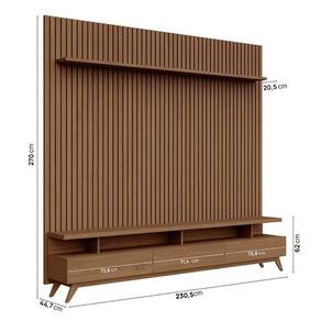 O Rack com painel Yucca combina elegância e versatilidade em um só produto. Com o painel ripado em relevo de 15mm e estrutura em MDF 15mm, oferece resistencia e sofisticado. Já o rack possui estrutura em MDF, tampo de 40 mm, pés em madeira maciça e acabamento em pintura UV. Suporta TVs de até 85?, possui gavetas com corrediças telescópicas. O móvel ideal para transformar sua sala com design contemporâneo e funcionalidade. Produto Montado: Sim Acabamento: Pintura UV Acabamento da Gaveta: Impressão Acabamento da Prateleira: Impressão Acabamento dos Pés: Verniz Acompanha Manual de Instalação: Sim Altura do Conjunto: 270 cm Altura do Painel: 250 cm Altura do Rack: 62 cm Altura dos Pés: 20 Altura Máxima dos Pés: 20.0000 Ambiente Principal: Sala de Estar codigo_ean: 7900288239723 Complexidade da Montagem: Média: pode ser montado por mais de uma pessoa e/ou necessite de maior conhecimento para montagem Cor: Cedro Cor do Produto: Cedro Cor Flex: Não Cor Interna: Cedro Escala de Brilho: Semi-Brilho Escala de Brilho da Gaveta: Semi-Brilho Escala de Brilho da Prateleira: Semi-Brilho Espessura do Tampo: 42 mm Fixação na Parede: Sim Gaveta com Chave: Não Ideal para TVs até (Polegadas): 84 Informação Complementar: 1x Painel para Tv até 85 Polegadas 230x250cm 100% Mdf Aloe Cabecasa Madeiramadeira Cedro Largura: 230,5 cm Altura: 250 cm Peso: 89,99 kg Profundidade: 20,5 cm Necessita Montagem: Sim