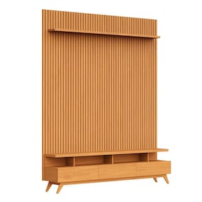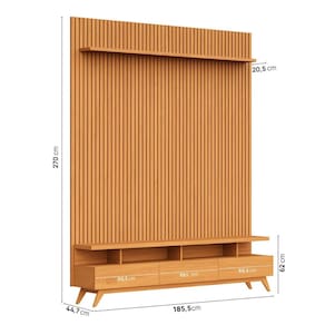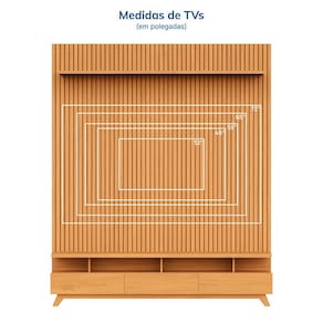 O Rack com painel Yucca combina elegância e versatilidade em um só produto. Com o painel ripado em relevo de 15mm e estrutura em MDF 15mm, oferece resistencia e sofisticado. Já o rack possui estrutura em MDF, tampo de 40 mm, pés em madeira maciça e acabamento em pintura UV. Suporta TVs de até 72", possui gavetas com corrediças telescópicas. O móvel ideal para transformar sua sala com design contemporâneo e funcionalidade. Produto Montado: Sim Acabamento: Pintura UV Acabamento da Gaveta: Pintura UV Acabamento da Prateleira: Pintura UV Acabamento dos Pés: Verniz Acompanha Manual de Instalação: Sim Altura do Painel: 250 cm Altura do Rack: 62 cm Altura dos Pés: 20 cm Altura Máxima dos Pés: 20.0000 Ambiente Principal: Sala de Estar codigo_ean: 7900288265555 Complexidade da Montagem: Média: pode ser montado por mais de uma pessoa e/ou necessite de maior conhecimento para montagem Cor: Marrom Cor do Produto: Marrom Escala de Brilho: Semi-Brilho Escala de Brilho da Gaveta: Semi-Brilho Escala de Brilho da Prateleira: Semi-Brilho Espessura do Painel: 20,5 cm Espessura do Tampo: 42 mm Fixação na Parede: Sim Gaveta com Chave: Não Ideal para TVs até (Polegadas): 72 Itens Inclusos: 1 Rack, 1 Painel, Manual de Montagem e Kit Ferragens Largura do Painel: 185,5 cm Largura do Rack: 180 cm Manual de Montagem e Instalação: https://product-hub-prd.madeiramadeira.com.br/177341720/documents/ca6843a5-b48e-47cd-a278-612864a3881a3278478600517607240191303.pdf Marca: CabeCasa MadeiraMadeira Material da Gaveta: MDF Material da Prateleira: MDF Material dos Pés: Eucalipto Material Principal: MDF Necessita Montagem: Sim Origem do Produto: Nacional Peso do Painel: 75,03 kg Peso do Rack: 48,26 kg Peso Máximo por Gaveta: 5 kg Peso Máximo por Prateleira: 5 kg Possui Adega: Não Possui Espelho: Não Possui iluminação: Não Possui Passa Cabos: Sim Possui Pés: 05 Possui Portas: Não Possui Prateleiras: Sim Possui Tomada: Não Possui Vidro: Não Profundidade do Painel: 20.5000 Profundidade do Rack: 40 cm Quantidade de Gavetas: 03 Gavetas Quantidade de Nichos: 01 Recomendações de Uso, Manutenção e Limpeza: A limpeza deve ser feita com pano macio, levemente umedecido com água e sabão neutro. Em seguida, passe um pano seco para evitar o acúmulo de umidade. Nunca utilize produtos abrasivos, esponjas de aço, alvejantes, álcool em excesso ou solventes, pois esses produtos podem agredir o acabamento e comprometer sua aparência. Sapatas Niveladoras: Não Sistema de Montagem: Parafusos, cavilhas e minifix Suporte de TV Universal Incluso: Não Tipo de Corrediça da Gaveta: Metálica Telescópica Tipo de Puxador da Gaveta: Embutido