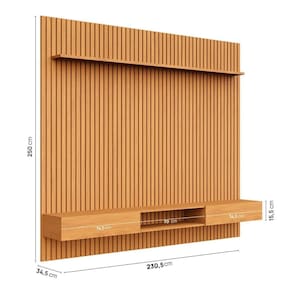 O Rack com Painel Aloe une elegância e funcionalidade. Com painel ripado em relevo de 15 mm, estrutura em MDF 15mm e portas com dobradiças com amortecimento, oferece sofisticação e praticidade. Disponível para TVs de até 85” e em acabamentos amadeirados Âmbar e Marrom, que seguem as tendências atuais do design. Produto Montado: Sim Acabamento: Impressão Acabamento da Porta: Impressão Acabamento da Prateleira: Impressão Acompanha Manual de Instalação: Sim Altura do Conjunto: 250 cm Altura do Painel: 250 cm Altura do Rack: 15,5 cm Ambiente Principal: Sala de Estar codigo_ean: 7900288231093 Complexidade da Montagem: Média: pode ser montado por mais de uma pessoa e/ou necessite de maior conhecimento para montagem Cor: Marrom Cor do Produto: Marrom Cor Interna: Marrom Escala de Brilho: Semi-Brilho Escala de Brilho da Porta: Semi-Brilho Escala de Brilho da Prateleira: Semi-Brilho Espessura do Painel: 20,5 cm Espessura do Tampo: 15 mm Fixação na Parede: Sim Ideal para TVs até (Polegadas): 84 Itens Inclusos: 1 Rack, Manual de Montagem e Kit Ferragens Largura do Conjunto: 230,5 cm Largura do Painel: 230,5 cm Largura do Rack: 218 cm Linha ou Coleção: Aloe Manual de Montagem e Instalação: https://product-hub-prd.madeiramadeira.com.br/281676506/documents/2dcbdd7e-319a-4c18-bedc-2019d701a36b3215802600517582240925642.pdf Marca: CabeCasa MadeiraMadeira Material da Porta: MDF Material da Prateleira: MDF Material do Puxador da Porta: MDF Material Principal: MDF Necessita Montagem: Sim Origem do Produto: Nacional Peso do Painel: 89,99 kg Peso do Rack: 20,48 kg Peso Máximo por Prateleira: 5 kg Possui Adega: Não Possui Espelho: Não Possui iluminação: Não Possui Passa Cabos: Sim Possui Pés: Suspenso Possui Portas: Sim Possui Prateleiras: Sim Possui Tomada: Não Possui Vidro: Não Profundidade do Conjunto: 36,2 cm Profundidade do Painel: 20.5000 Profundidade do Rack: 31,5 cm Quantidade de Nichos: 01 Recomendações de Uso, Manutenção e Limpeza: A limpeza deve ser feita com pano macio, levemente umedecido com água e sabão neutro. Em seguida, passe um pano seco para evitar o acúmulo de umidade. Nunca utilize produtos abrasivos, esponjas de aço, alvejantes, álcool em excesso ou solventes, pois esses produtos podem agredir o acabamento e comprometer sua aparência. Sistema de Montagem: Parafusos, cavilhas e minifix Suporte de TV Universal Incluso: Não Tipo de Dobradiça/Corrediça da Porta: Metálica Tipo de Puxador da Porta: Embutido